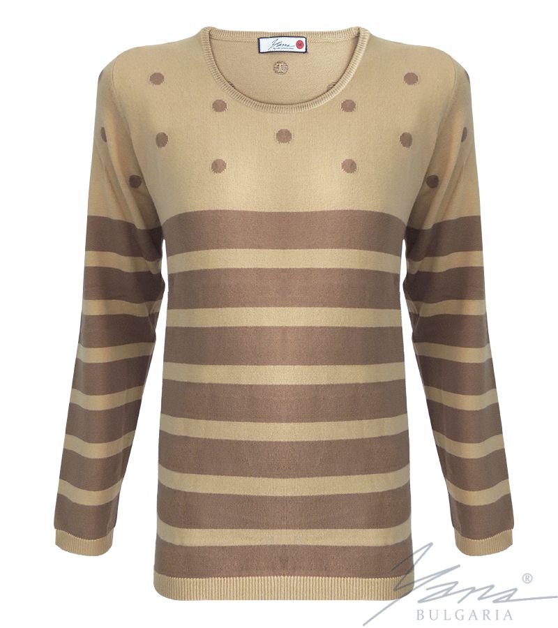 Zweifarbiger Intarsienpullover für Damen mit „O“-Ausschnitt in Beige
