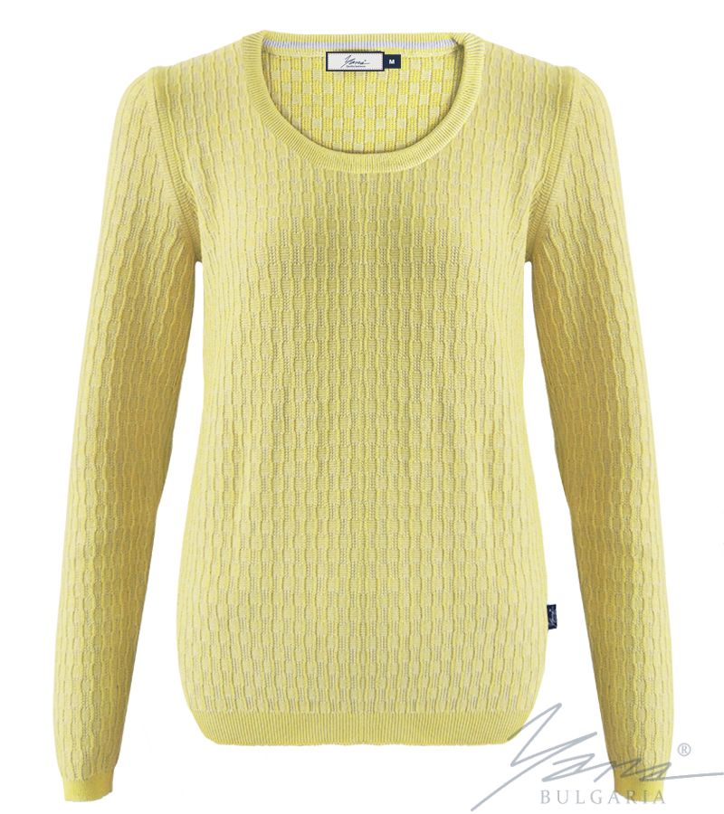 Bavlněné dámské svetry "YANA" JSC s výstřihem do "O" ve strukturálním úpletu dvou barev vanise s dlouhým rukávem pleteným 14 jemným jsou extrémně pohodlné a pohodlné na nošení, díky používaným světově nejlepším pletařským postupům. Nejvyšší výrobní standardy pro bavlněné tkaniny. Nejekologičtější konečná úprava díky švýcarské společnosti THIES GmbH . Svetr má stylový pravidelný střih, podle posledních módních trendů je pletený celomódně, bez střihu. Nejaktuálnější barvy sezóny. Ideální jak do kanceláře, tak na volný čas.