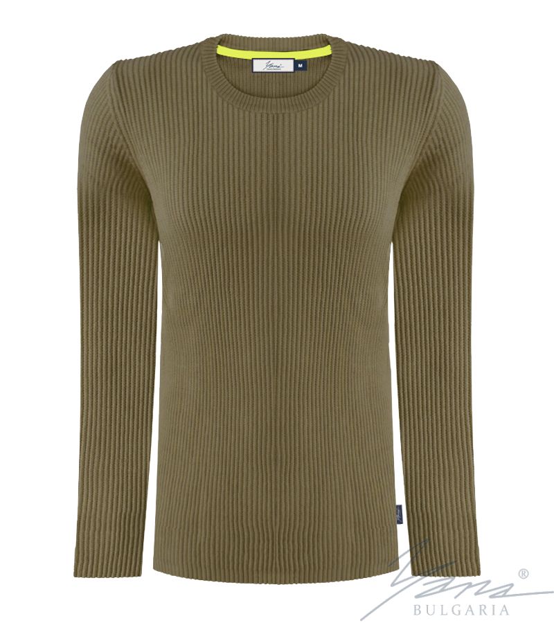 Pánský svetr s kulatým výstřihem, dlouhý rukáv, barva khaki