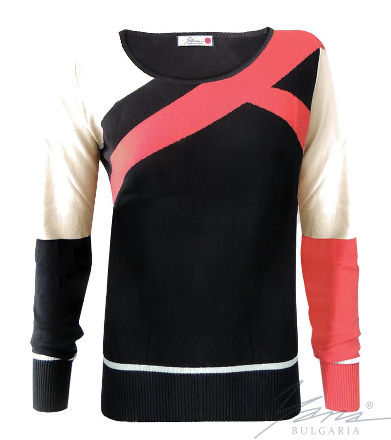 Женский трехцветный свитер с круглым вырезом интарсия, черный